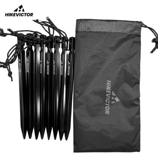 HikeVictor 10Pcs 18cm Aluminum Alloy Tent Pegs Camping Tents Nails with Wind Rope with Bag Outdoor Storage Cover Case Travel